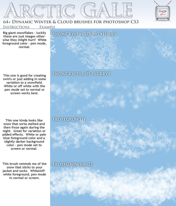 HUGE collection of Photoshop Dynamic Cloud, Frost and Snow brushes - Cold frosty and absolutely great for freezing things. Use your wacom pen to turn things cold.